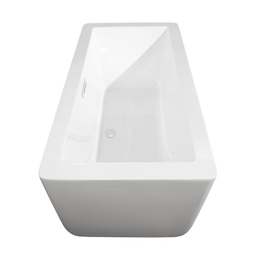 Laura 59" Freestanding Bathtub in White, Overflow Trim in Chrome