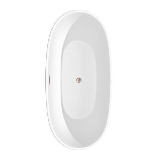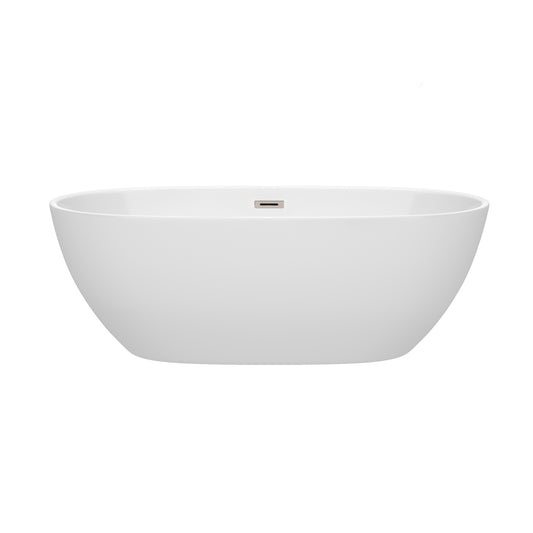Juno 67" Freestanding Bathtub in White, Brushed Nickel Drain, Overflow Trim