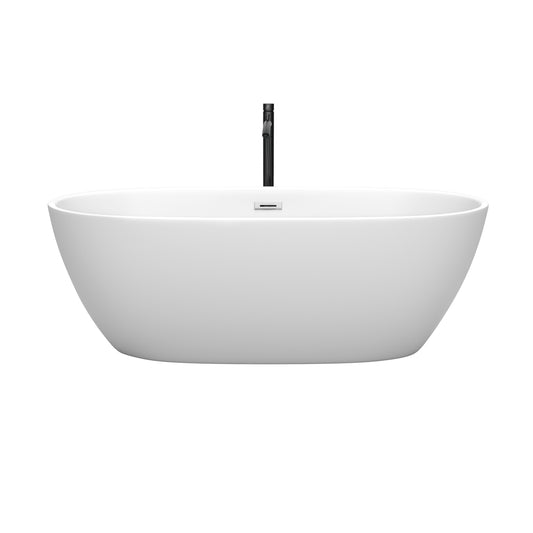 Juno 67" Freestanding Bathtub in Matte White, Chrome Trim, Faucet in Black