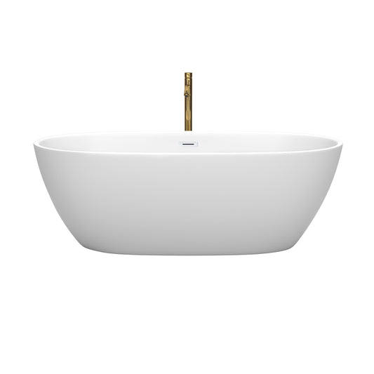 Juno 67" Freestanding Bathtub in Matte White, White Trim, Faucet in Brushed Gold