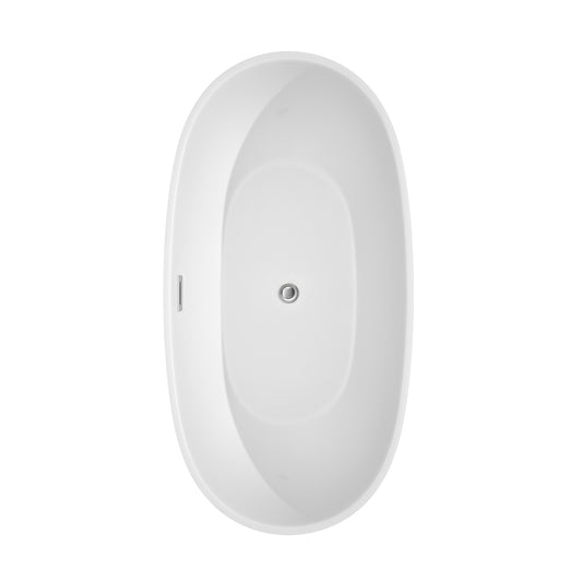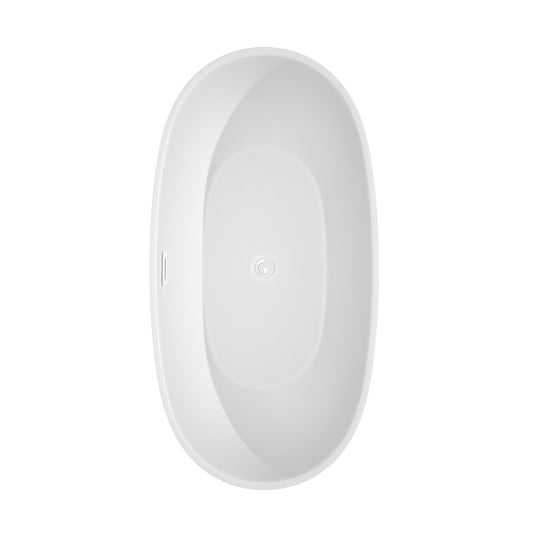 Juno 67" Freestanding Bathtub in Matte White, Polished Chrome Drain, Trim