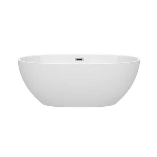 Juno 63" Freestanding Bathtub in White, Brushed Nickel Drain, Overflow Trim