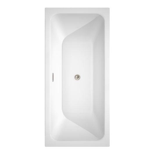 Emily 69 Inch Freestanding Bathtub in White, Brushed Nickel Drain,Overflow Trim