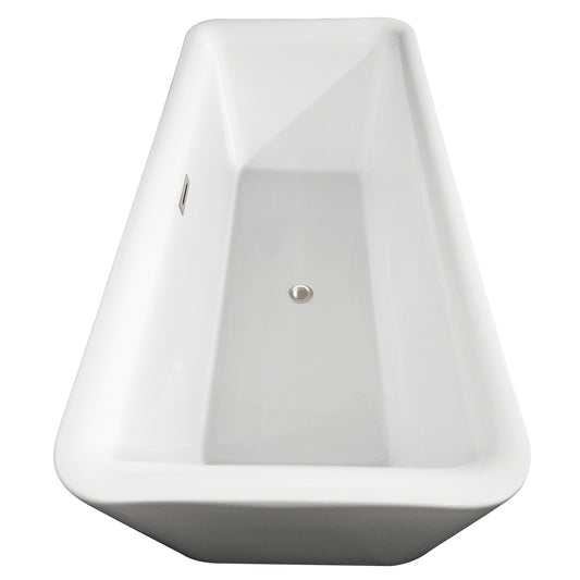 Galina 67" Freestanding Bathtub in White, Brushed Nickel Drain, Overflow Trim