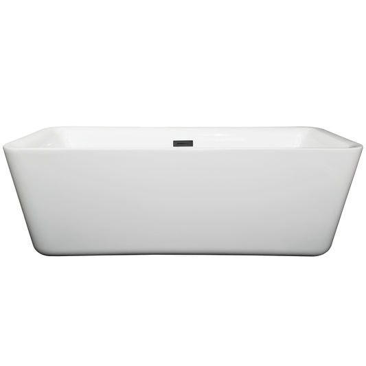Emily 69" Freestanding Bathtub in White, Overflow Trim in Matte Black