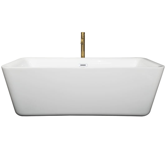 Emily 69" Freestanding Bathtub in White, Chrome Trim, Faucet in Brushed Gold