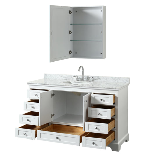 Deborah 60" Single Vanity in White, Top, Oval Sink, Medicine Cabinet