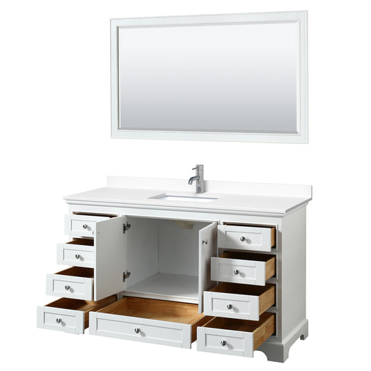 Deborah 60" Single Vanity in White, Top, Square Sink, 58" Mirror