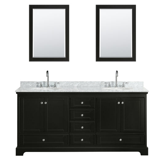 Deborah 72" Double Vanity in Dark Espresso, Top, Oval Sinks, 24" Mirrors