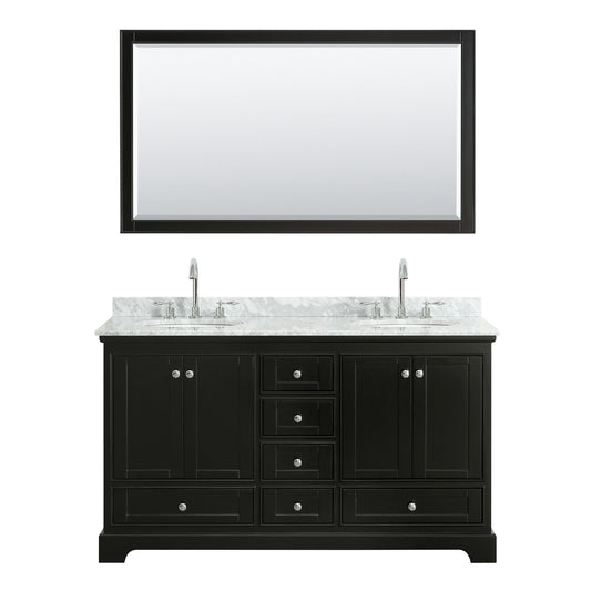 Deborah 60" Double Vanity in Dark Espresso, Top, Oval Sinks, 58" Mirror