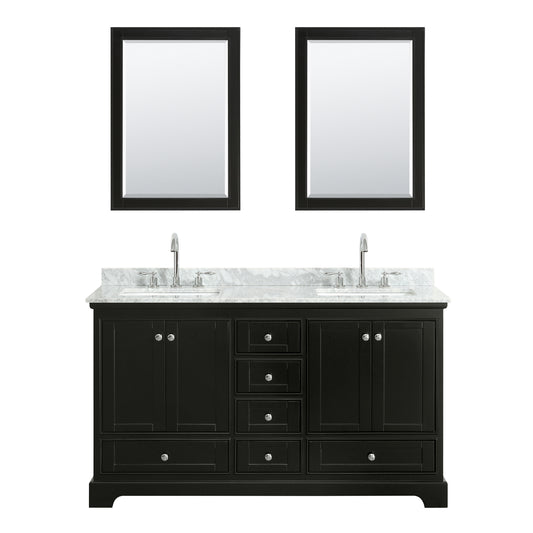 Deborah 60" Double Vanity in Dark Espresso, Top, Square Sinks, 24" Mirrors
