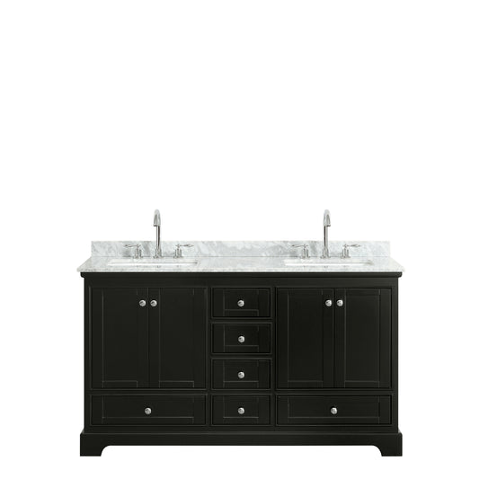 Deborah 60" Double Vanity in Dark Espresso, White Cultured Marble Top, Sinks