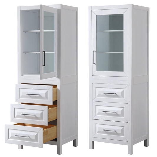 Daria Linen Tower in White, Shelved Cabinet Storage, 3 Drawers
