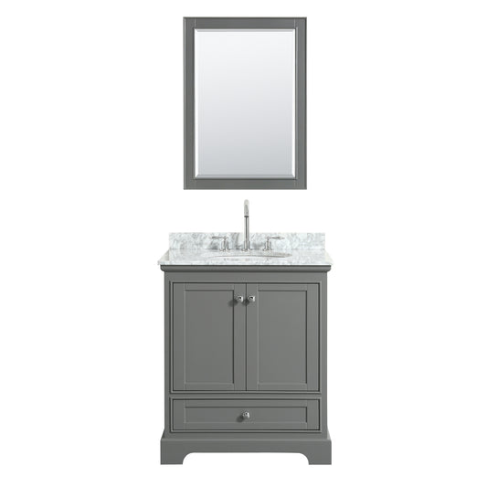 Deborah 30" Single Vanity in Dark Gray, Carrara Cultured Marble Top, 24" Mirror