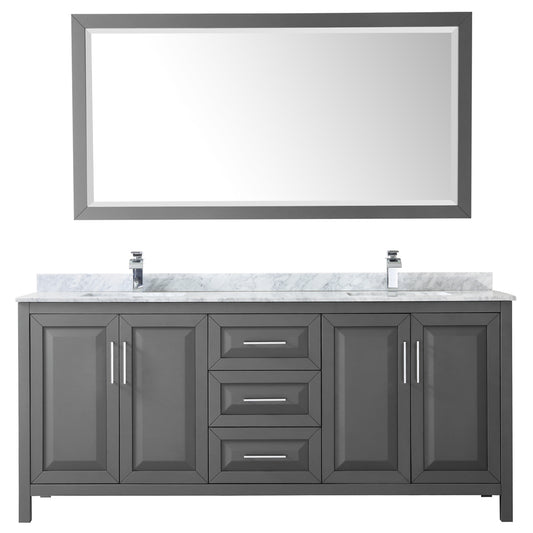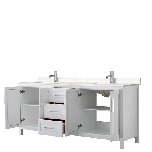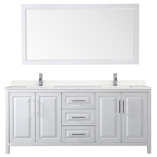 Daria 80" Double Vanity in White, Carrara Cultured Marble Top, Sinks, 70" Mirror
