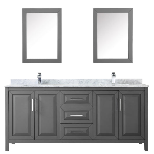 Daria 80" Double Vanity in Dark Gray, Top, Square Sinks, 24" Mirrors