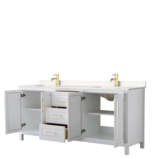 Daria 80" Double Vanity in White, Carrara Cultured Marble Top, Gold Trim
