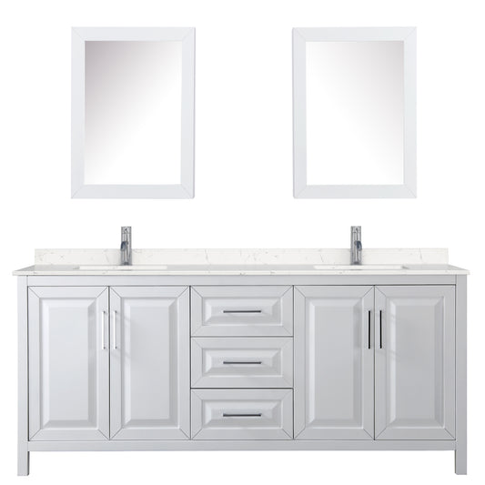 Daria 80" Double Vanity in White, Carrara Cultured Marble Top, 24" Mirrors
