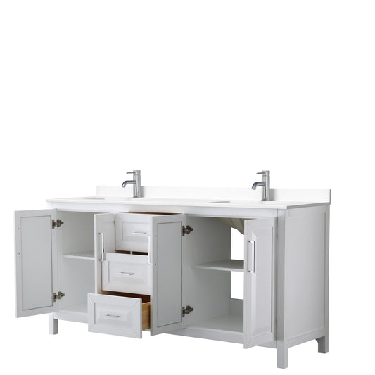 Daria 72" Double Vanity in White, White Cultured Marble Top, Sinks