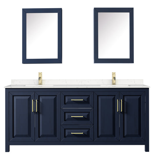 Daria 80" Double Vanity in Dark Blue, Carrara Cultured Marble Top, 24" Mirrors