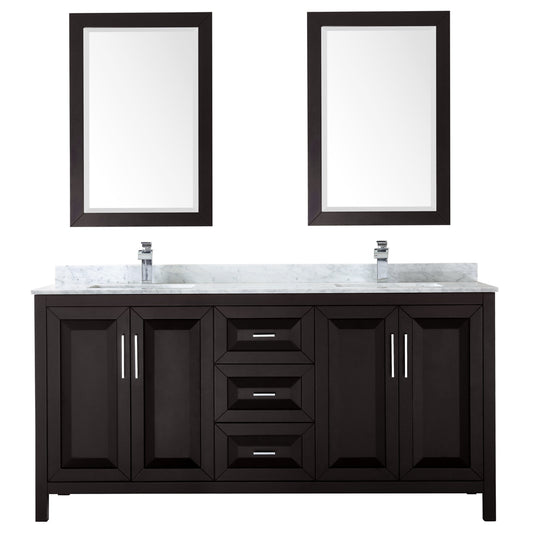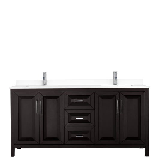 Daria 72" Double Vanity in Dark Espresso, White Cultured Marble Top, 70" Mirror