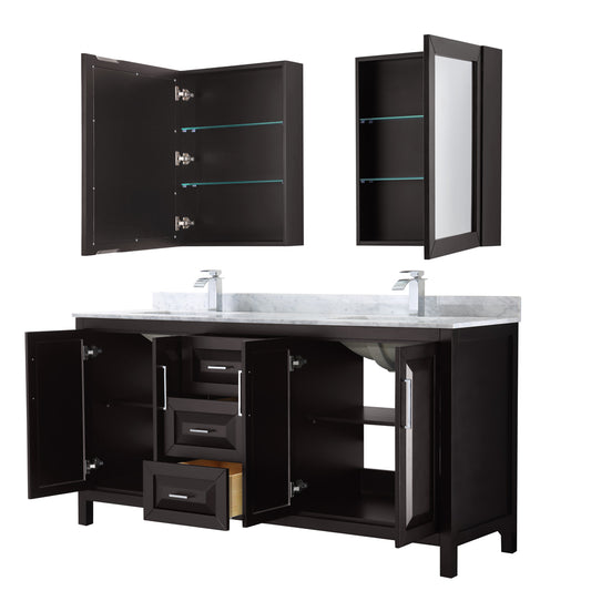 Daria 72" Double Vanity in Dark Espresso, Carrara Cultured Marble Top, Sinks