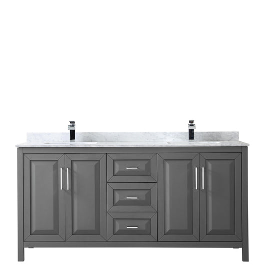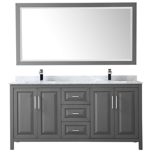 Daria 72" Double Vanity in Dark Gray, Carrara Cultured Marble Top, 70" Mirror