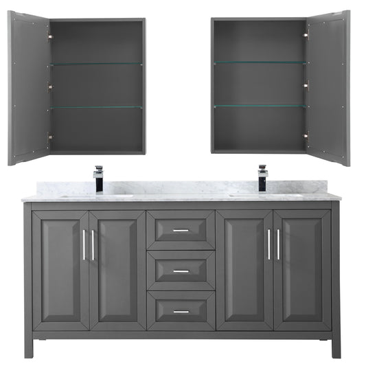 Daria 72" Double Vanity in Dark Gray, Top, Square Sinks, Medicine Cabinets