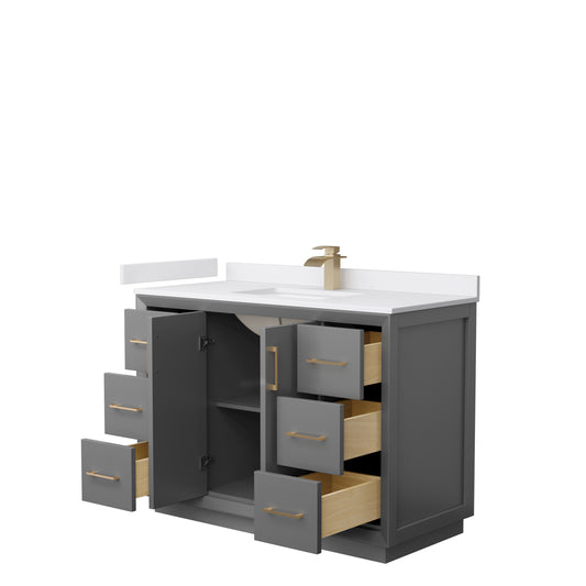 Strada 48" Single Vanity in Gray, White Marble Top, Sink, Bronze Trim