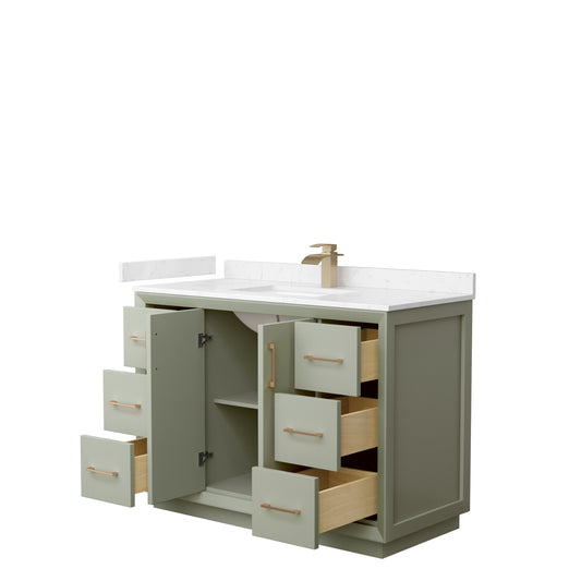 Strada 48" Single Vanity in Green, White Carrara Marble Top, Sink, Bronze Trim