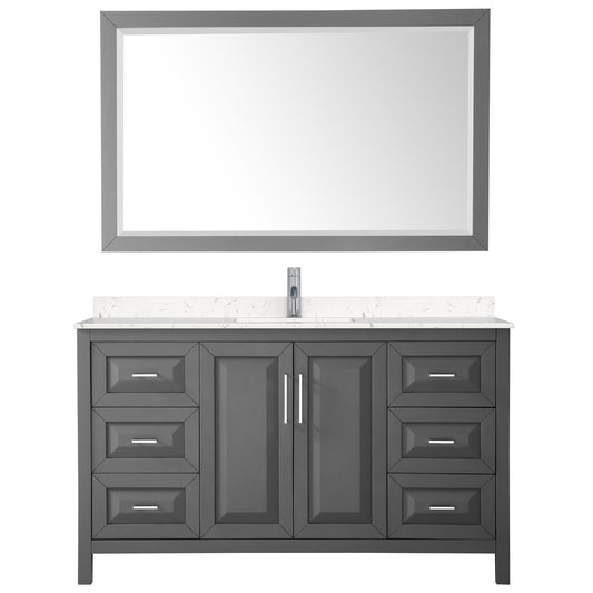Daria 60" Single Vanity in Dark Gray, Carrara Cultured Marble Top, 58" Mirror