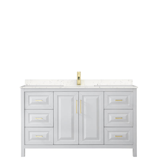 Daria 60" Single Vanity in White, Carrara Cultured Marble Top, Gold Trim