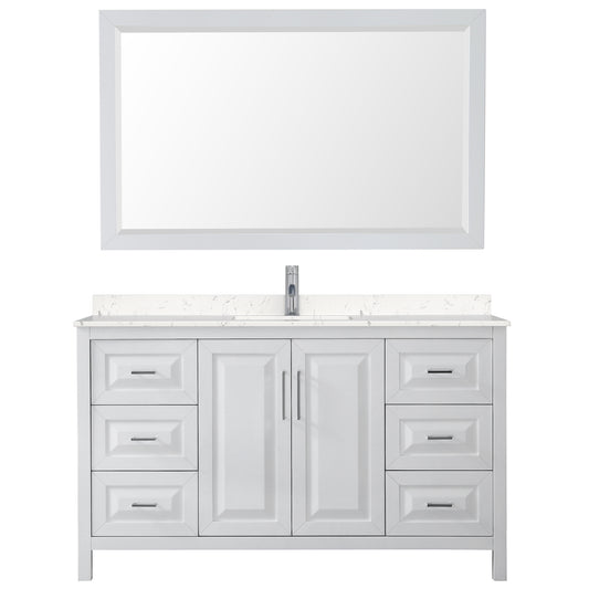Daria 60" Single Vanity in White, Carrara Cultured Marble Top, Sink, 58" Mirror