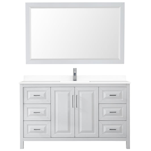Daria 60" Single Vanity in White, Top, Square Sink, 58" Mirror