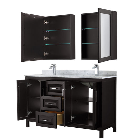 Daria 60" Double Vanity in Dark Espresso, Top, Square Sinks, Medicine Cabinets