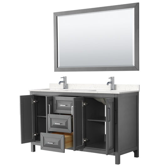 Daria 60" Double Vanity in Dark Gray, Carrara Cultured Marble Top, 58" Mirror