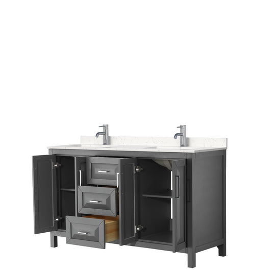 Daria 60" Double Vanity in Dark Gray, Carrara Cultured Marble Top, Sinks