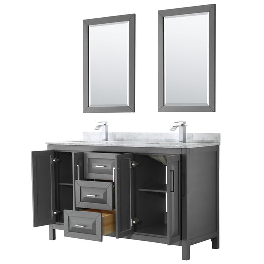 Daria 60" Double Vanity in Dark Gray, Carrara Cultured Marble Top, 24" Mirrors
