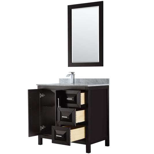Daria 36" Single Vanity in Dark Espresso, Top, Square Sink, 24" Mirror