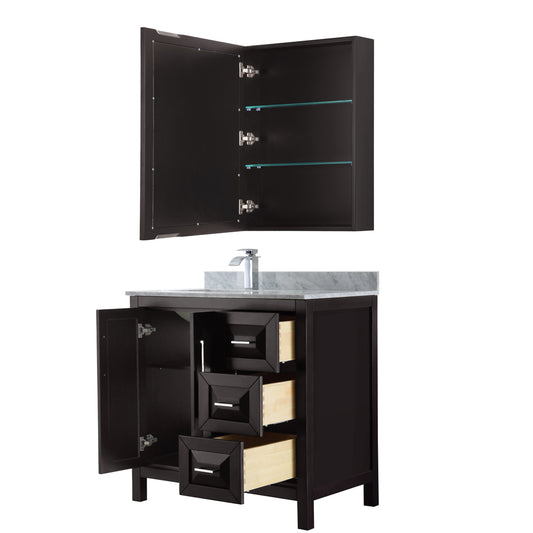 Daria 36" Single Vanity in Dark Espresso, Top, Square Sink, Medicine Cabinet