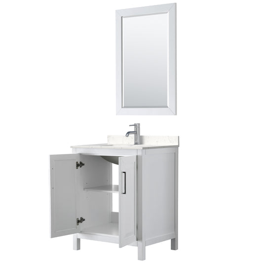 Daria 30" Single Vanity in White, Carrara Cultured Marble Top, Sink, 24" Mirror
