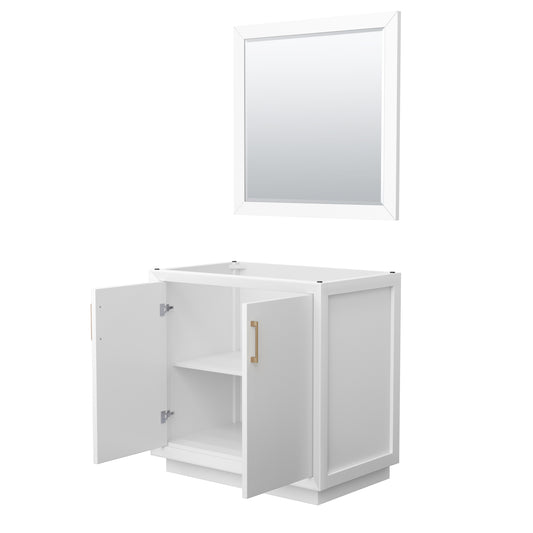 Strada 36 Inch Single Vanity in White, Satin Bronze Trim, 34 Inch Mirror