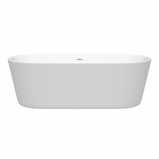 Carissa 71" Freestanding Bathtub in White, Polished Chrome Drain, Overflow Trim