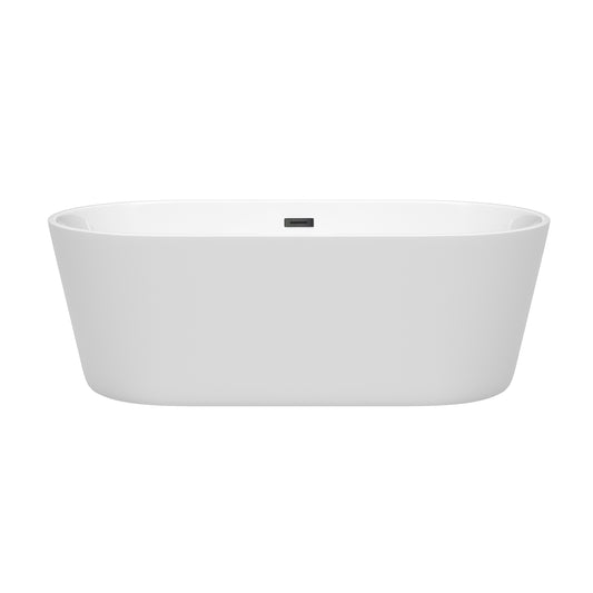 Carissa 60" Freestanding Bathtub in White, Matte Black Drain, Overflow Trim