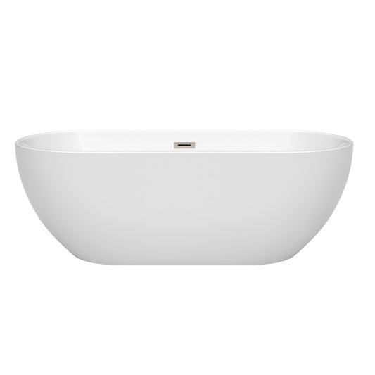 Carissa 67" Freestanding Bathtub in White, Brushed Nickel Drain, Overflow Trim