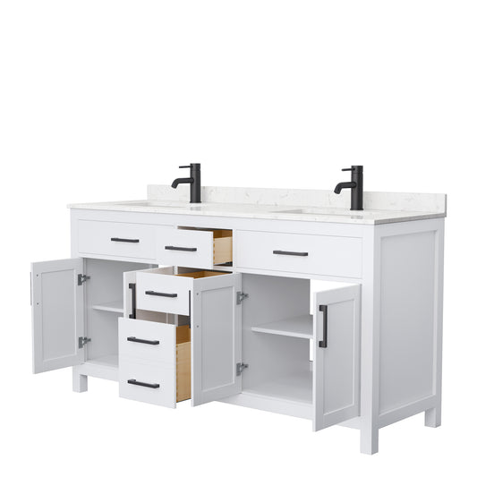 Beckett 66" Double Vanity in White, Carrara Cultured Marble Top, Sinks