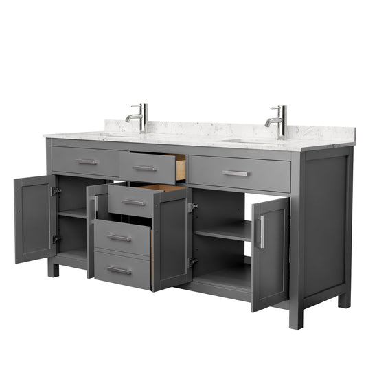 Beckett 72" Dark Gray Double Vanity, Carrara Cultured Marble Top, Square Sinks