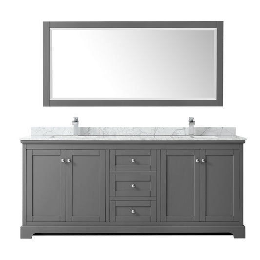 Avery 80" Double Vanity in Dark Gray, Top, Square Sinks, 70" Mirror