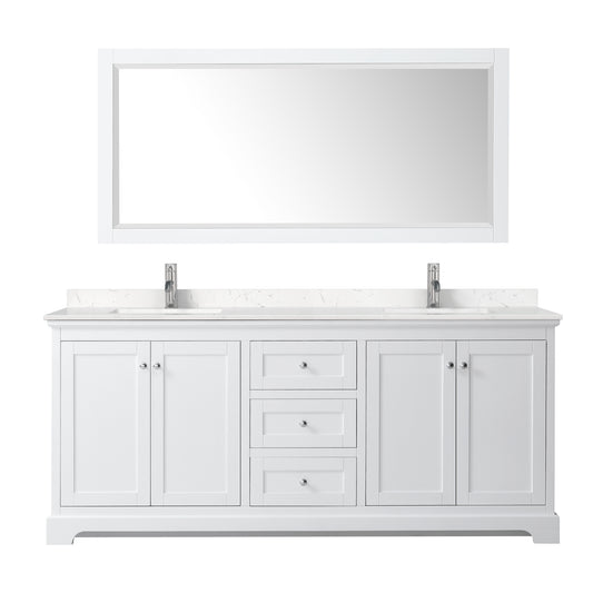 Avery 80" Double Vanity in White, Carrara Cultured Marble Top, Sinks, 70" Mirror