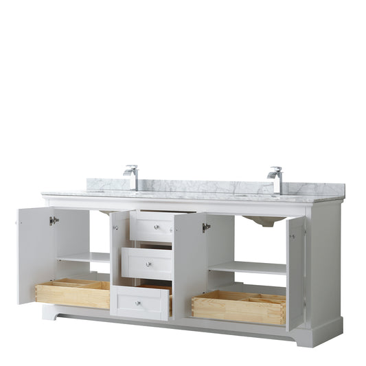 Avery 80" Double Vanity in White, Carrara Cultured Marble Top, Sinks